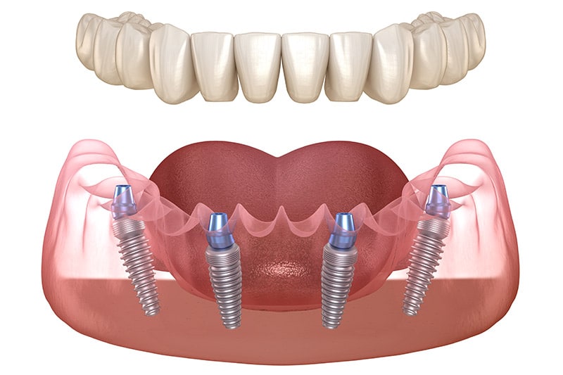 All-on-4 dental implants are a full-arch dental restoration option designed to replace an entire arch of missing teeth. The technique involves securing full prosthetic teeth onto four dental implants strategically placed in the jawbone.